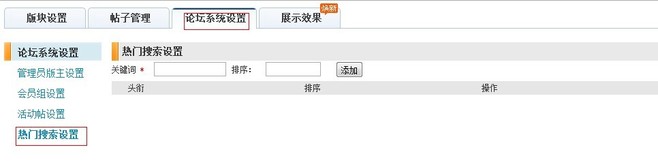 搜索热门词设置:管理后台->高级功能->论坛->论坛系统设置
