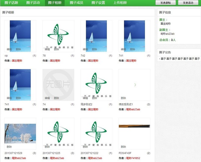 C 相册功能,圈子成员可以分享相册