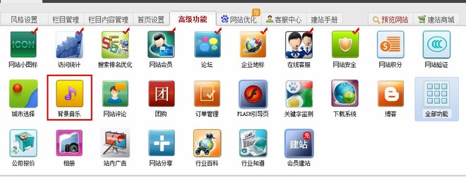 操作位置:管理后台->高级功能->背景音乐