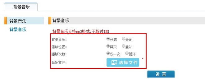 功能特点:可设置仅首页播放和全站播放,以及播放一次还是循环等!