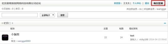 2、管理后台->高级功能->积分管理->论坛积分(设置每日签到积分)