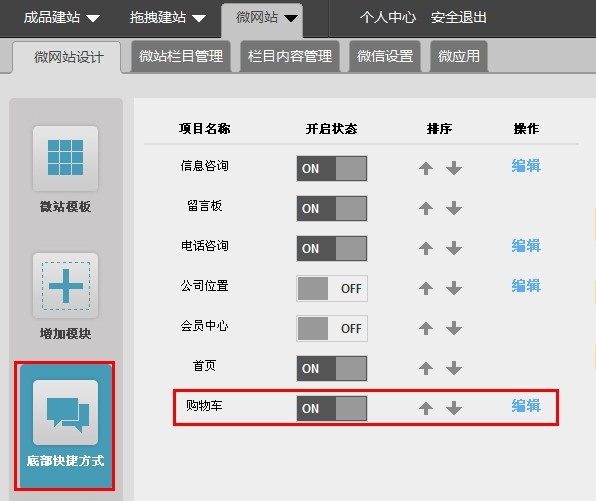 1、如果栏目中有开通购物车的产品栏目,开通底部快捷方式中的购物车,浮动购物车将自动取消!