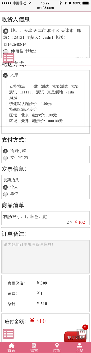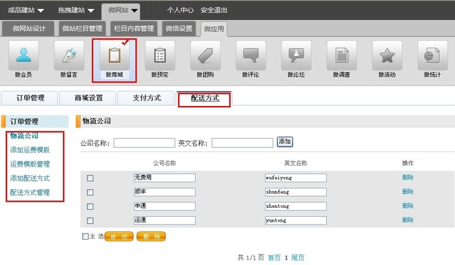 4、完善的配送方式设置(物流公司,配送模板支持区域定价,配送方式设置)
