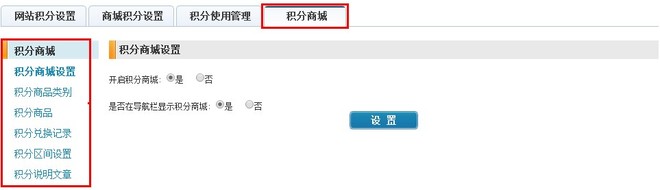 1、积分商城设置,是否开启及栏目显示