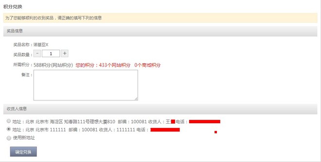积分兑换提交页: