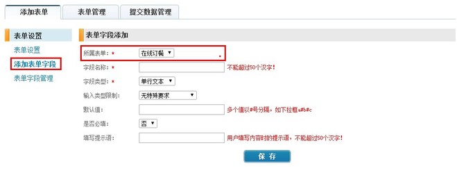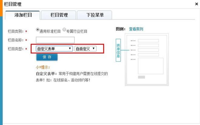 方式二:管理后台->栏目管理->添加栏目->自定义表单