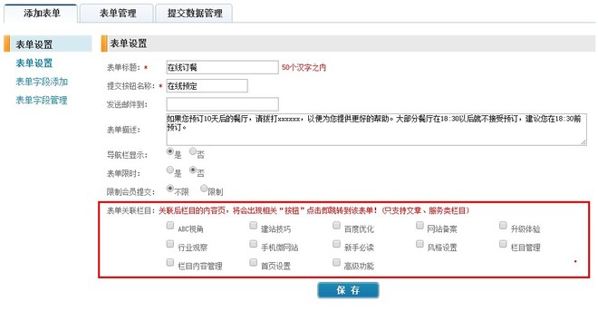 表单如何与栏目内容相关联?