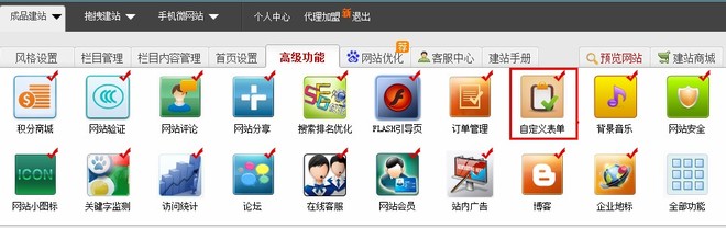 4、管理方式更改为:管理后台->高级功能->自定义表单