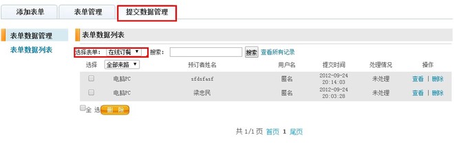 管理后台->高级功能->自定义表单->提交数据管理->选择相关表单