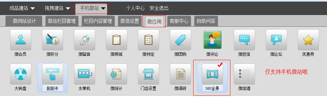 打开网站管理后台(http://admin.ev123.com/login.php)登陆您的已注册账户(用户名和密码区分大小写),到手机微站中找到微应用就可以看到最新上线的360°全景啦。