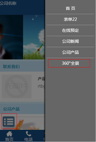 (导航的显示位置取决于您在后台设置的选择)(如下图,图中是小编自己的手机微站)