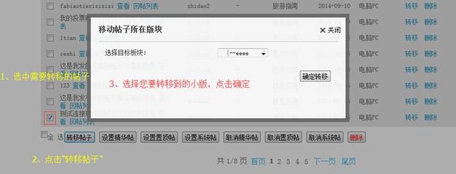 £¨1£©Ìû×ÓÅúÁ¿Òƶ¯¹¦ÄÜ£ºÔÚ Ìû×Ó¹ÜÀí¨¤Ìû×ÓÁбí ÖÐÎÒÃÇÉý¼¶ÁËÔÚºǫ́Ìû×ÓµÄÅúÁ¿Òƶ¯£¬Ñ¡ÖÐÄúÐèÒªÒÆ¶¯µÄÌû×Óµã»÷¡°×ªÒÆÌû×Ó¡±°´Å¥£¬¾Í»á³öÏÖ×ªÒÆÌû×ӵĶԻ°¿ò£¬Ñ¡ÔñÐèÒªÒÆ¶¯µ½µÄС°æ¼´¿É°ÑÑ¡ÔñµÄÌû×Ó×ªÒÆµ½ÏàÓ¦µÄС°æÏ¡££¨Èçͼ2£©