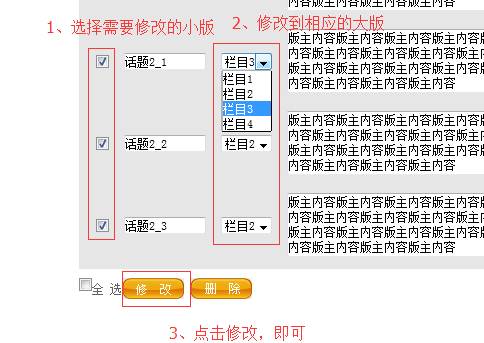 £¨2£©×ªÒÆÐ¡°æ£ºµã»÷ °å¿éÉèÖè¤Ð¡°æ¹ÜÀí ÔÚС°æÁбíÖÐ ¡°ËùÊô´ó°æ¡± µÄÀ¸Ä¿ÀïÎÒÃÇÏÖÔÚ×ö³ÉÁË¿ÉÒÔÇл»µÄÏÂÀ£¬ÄúÏë×ªÒÆÄ³¸öС°æµ½ÆäËû´ó°æÏÂʱ£¬Äú¿ÉÒÔÑ¡ÖÐС°æ£¬¸ü¸ÄС°æ¡°ËùÊô´ó°æ¡±ÖÐµÄ´ó°æ£¬È»ºóµã»÷¡°Ð޸ġ±¾Í¿ÉÒÔÅúÁ¿µÄ½«Ð¡°æ×ªÒƵ½ÄúËùÑ¡ÔñµÄ´ó°æÖУ¨Ð¡°æÖеÄÌû×ÓÒ²»á×ªÒÆµ½Ð´ó°æÖУ©¡££¨Èçͼ3£©