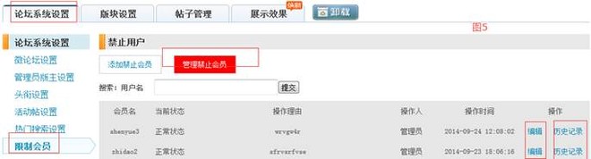 ÔÚ¡°¹ÜÀí½ûÖ¹»áÔ±¡±ÖУ¬Äú¿´¿ÉÒÔÕÒµ½ËùÓлáÔ±±»½ûÖ¹µÄ¼Ç¼¡££¨Í¼5£©