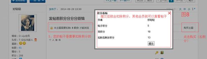 £¨2£©·¢Ìû³É¹¦ºóÔÚÌû×ÓÁбí»áÏÔʾ¸ÃÌù×ÓÊǿ۳ýÏàÓ¦»ý·Ö²Å¿É²é¿´µÄ¡££¨Èçͼ7¡¢8£©