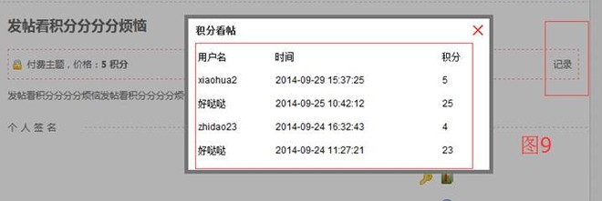 £¨3£©Ìû×Ó×÷Õß¡¢¹ÜÀíÔ±¡¢°æÖ÷²»ÊܸÃÏÞÖÆ£¬Ò²¿ÉÔÚÌû×ÓÏêÇéÒ³¿´µ½¸¶»ý·Ö¿´ÌûµÄ¼Ç¼¡££¨Èçͼ9£©