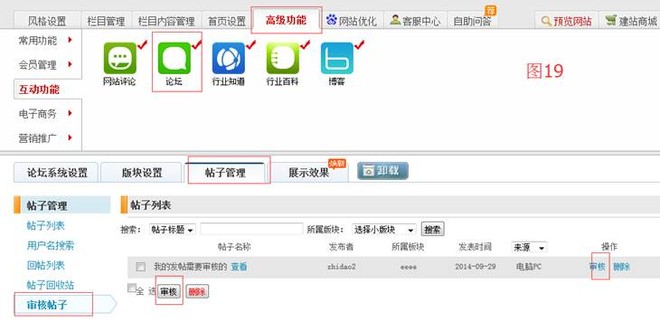 ÄúÐèÒªÔÚ¡°¹ÜÀíºǫ́¡±ÖÐÉóºËÌû×Ó, ÉóºËͨ¹ýµÄÌû×Ó£¬¼´¿ÉÔÚÍøÕ¾Ç°Ì¨ÏÔʾ£¬µ±·¢ÌûÐèÉóºËµÄ»áÔ±ÐÞ¸ÄÒÑÉóºËµÄÌû×Ӻ󣬸ÃÌû×Ó»¹ÊÇÐèÒªÄúÔÚºǫ́ÉóºËµÄ¡££¨Èçͼ19£©