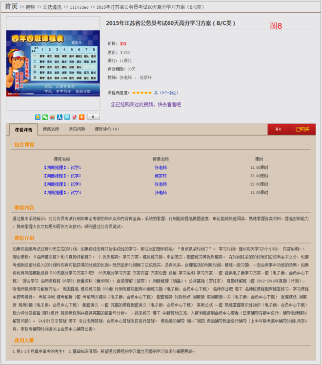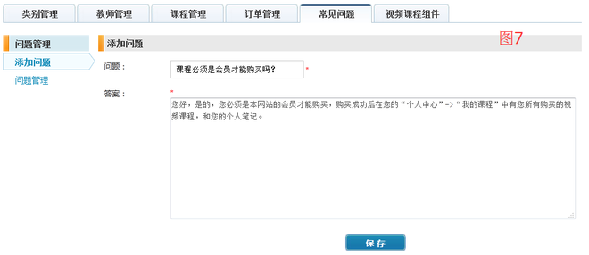 六、常见问题,您设置了常见问题每一个课程页面都会显示。如图7